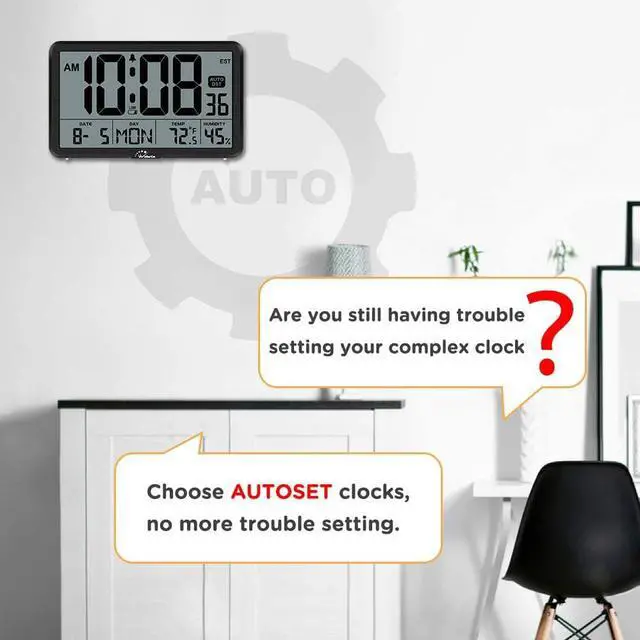 Wall Clocks Battery Operated, Autoset - Once you insert three AA batteries (Not included), it will automatically set the correct time. You just need to select the time zone. It also has a Memory BATTERY in case of a power outage, in which case it will retain the correct time and date when the power returns. (non-atomic clock)