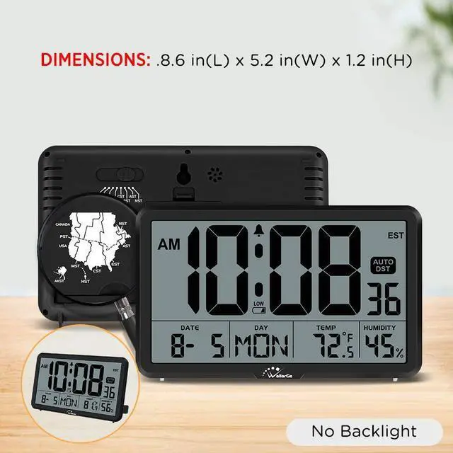 Wall Clock for Livingroom Decor - 12 or 24 Hours display formats; 8 time zones to choose and an option to turn daylight savings time on or off; temperature display in Celsius or Fahrenheit; accurate date and time. These digital wall clocks work well for offce, bathroom or kitchen decor. (no backlight)