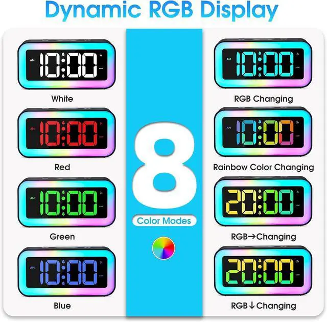 8 Colors Rgb Digital Display: Dynamic RGB color changing display with 4 regular colors and 4 dynamic RGB colors modes, Adjustable brightness from 10% to 100%