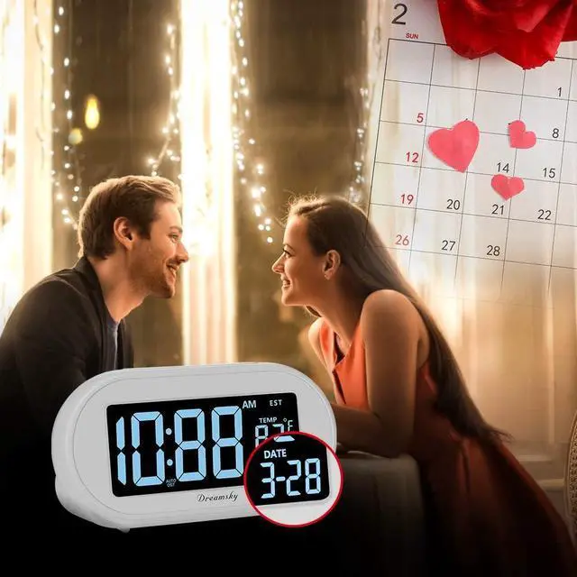 Full Range Dimmer: 4.3 Inches large LCD screen displays eye easy catch blue digit, time and date are easy to read at a glance. 0%-100% adjustable dimmer enable you to set the brightness of display to a comfortable level at will. The digital alarm clock is perfect small gift for kids elderly senior.