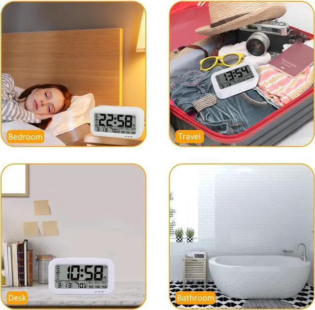 Rechargeable Battery Operated: Its an easy cordless battery operated desk alarm clock. Features large clear display, smart low night light, 12-hour / 24-hour, easy for kids, teens to use, basic bedroom bedside table alarm clock. Suitable for home, office, travel, closet, incubator, greenhouse, garden, wine cellar, etc.