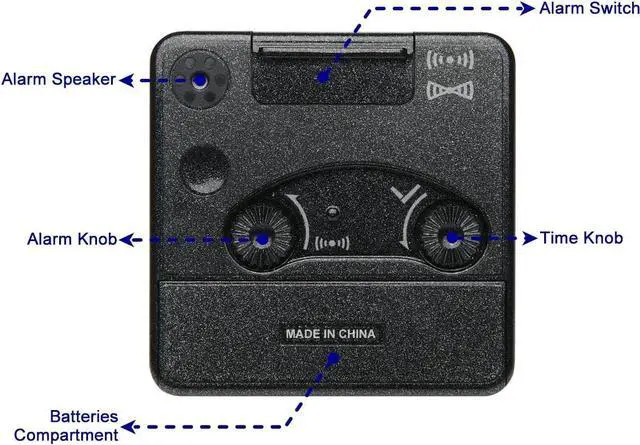 A large convenient alarm on/off switch is located on top where it is easy to reach. Easy access snooze and light bar is on right hand side of the front, away from the backside time and alarm setting wheel.