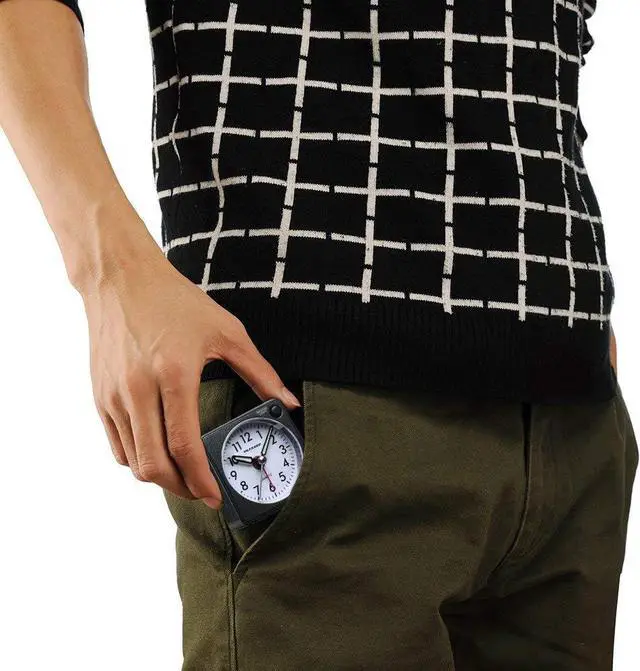 Ultra Small (2 ¼" x 2 ¼" x 1 ¼" ), light weight (2 oz), square features make this travel alarm clock stands out in a crowd. It fits easily into a suitcase even your pocket during your journey.