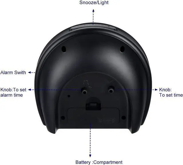Snooze and Manual Light-- Snooze and light button locates on easy-to-find top place. Hold button down for 5 minutes snooze or to light up the clock face on demand to see the dial momentarily in the darkness. PRESS TO LIGHT- NO auto-light.