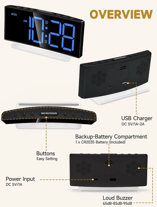 Outlet Powered And Battery Backup: This compact clock can be powered using the included USB power adapter, with a battery backup feature to maintain time and alarm settings during power outages