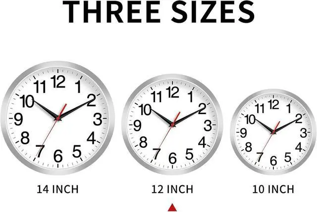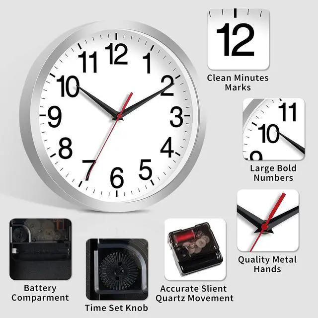 12 Inch Wall Clock Modern Battery Operated Silent Non Ticking Analog Clock Decorative for Bedroom Kitchen Bathroom Office Home Living Room (Silver)