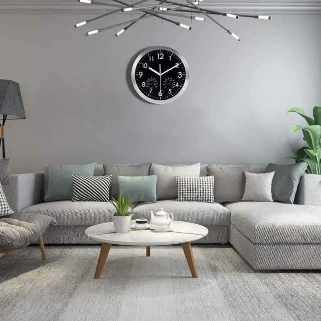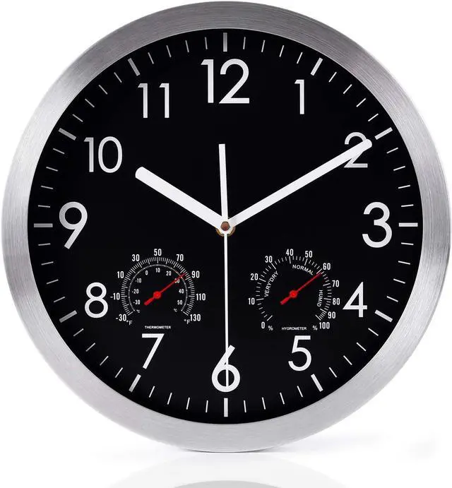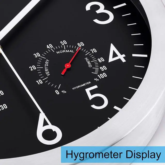 Thermometer & Humidity -- Our wall clock with thermometer and hygrometer function, built-in sensor to automatically measures Indoor/outdoor temperature and humidity.