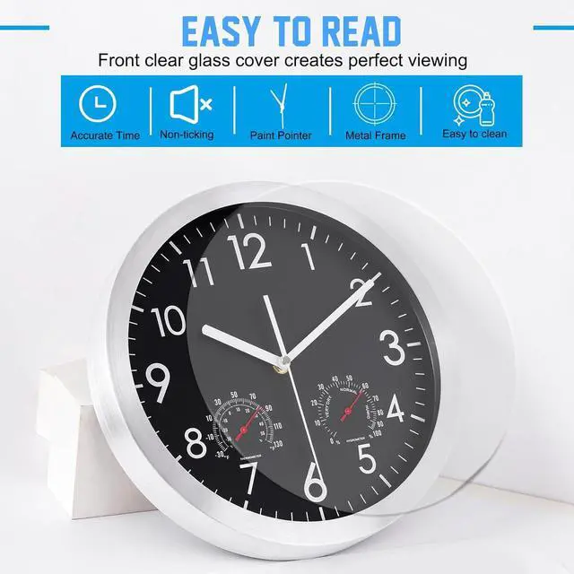 Sturdy Aluminum frame and premium glass cover to ensure protection from dust and debris, perfect wall clock for an office, classroom, bedroom, bathroom and any room in your home.
