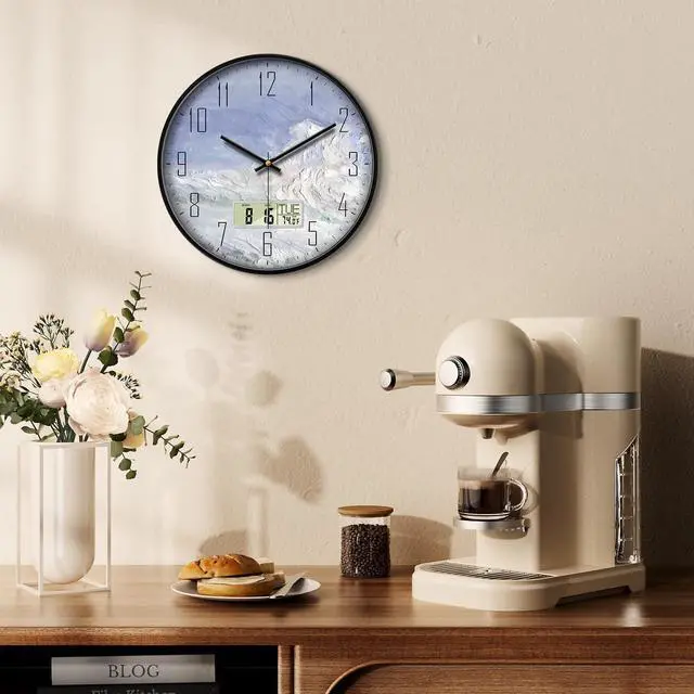 CLEAR AND EASY TO READ- SCOAGE round modern wall clock measures 12 inches in diameter, 1.6 inch deep. You can see the time, date and temperature easily. This wall calendar can meet your daily needs of time.