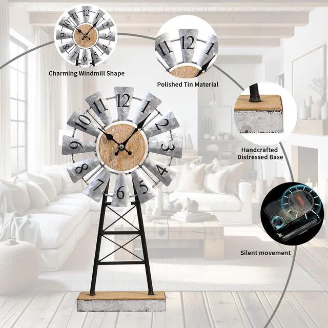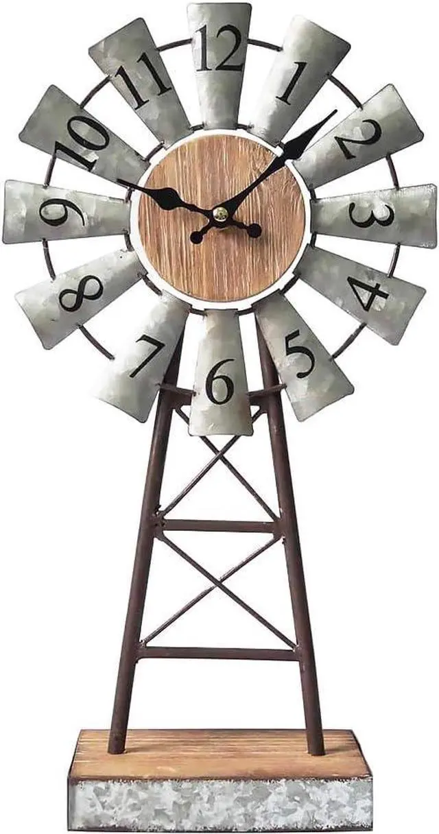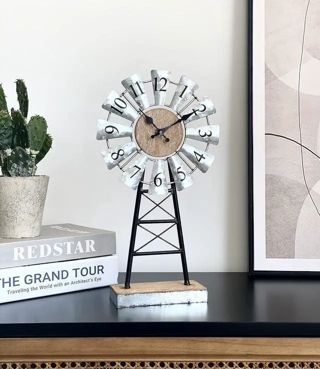 Farmhouse Windmill Charm: Inspired by vintage windmills, this decorative windmill clock brings rustic charm to your desk, shelf, or tabletopperfect for farmhouse or country-style interiors