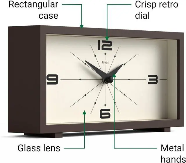 Stylish mid-century clock, perfect size clock for your mantelpiece, desk, table, sideboard or shelf, with plenty of modern appeal.