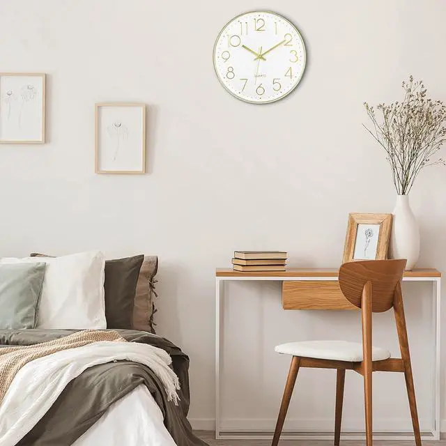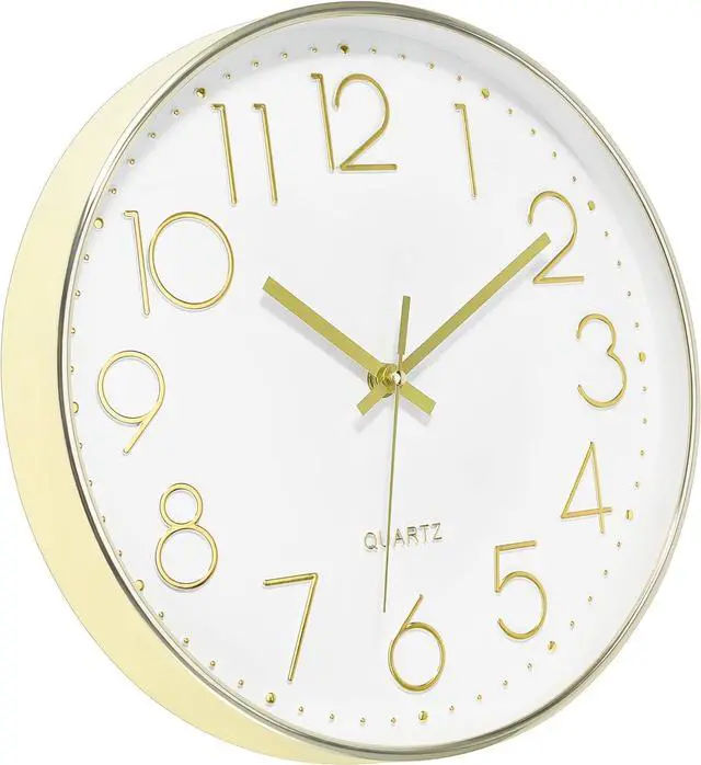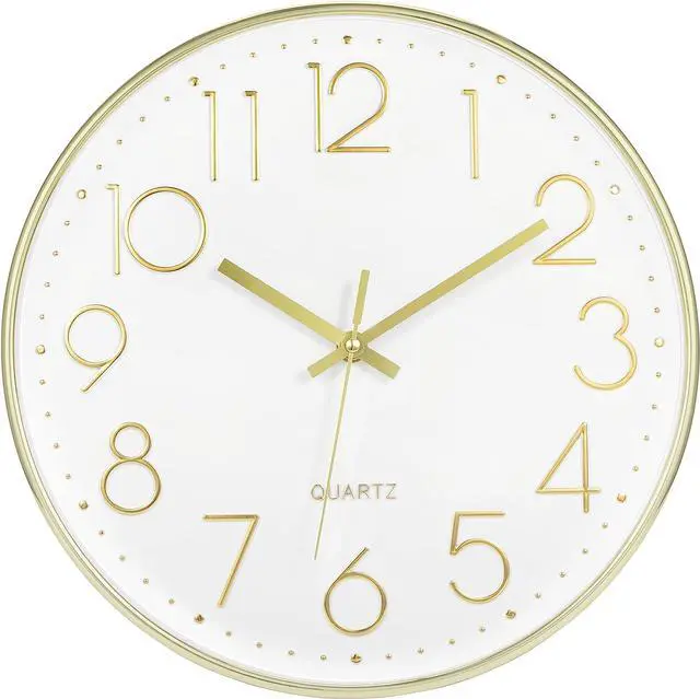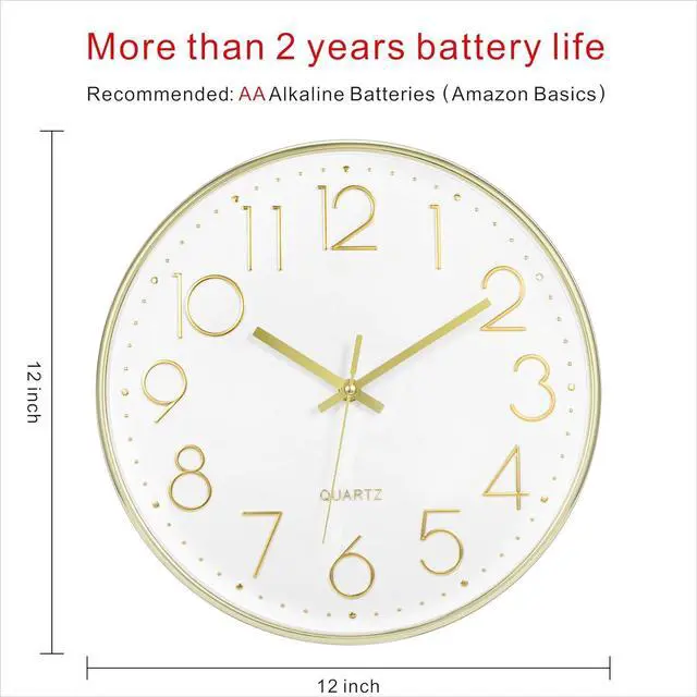 Luxury Design: Stylish designed white dial with large gold numbers and high-quality sturdy gold frame. This functional wall art is beautiful and practical. Gold color frame makes it a perfect decorative clock for office, living room, kitchen, hallway...