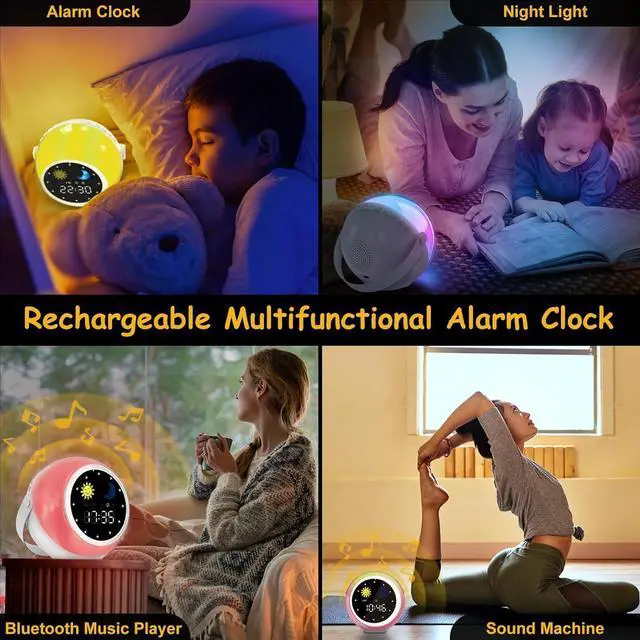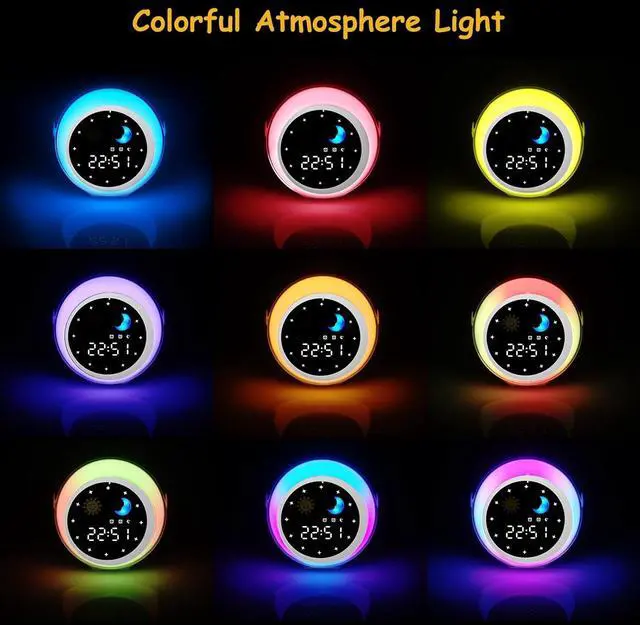 Educational Design: Customizable moon and sun icons automatically switch according to set times, making it a great wake - up clock for kids and toddlers. Sleep Timer and