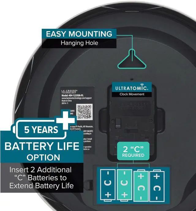 [5-YEAR BATTERY LIFE] A quality set of 4 C batteries will keep the clock running for up to 5 years an impressive feat offering unparalleled convenience and peace of mind