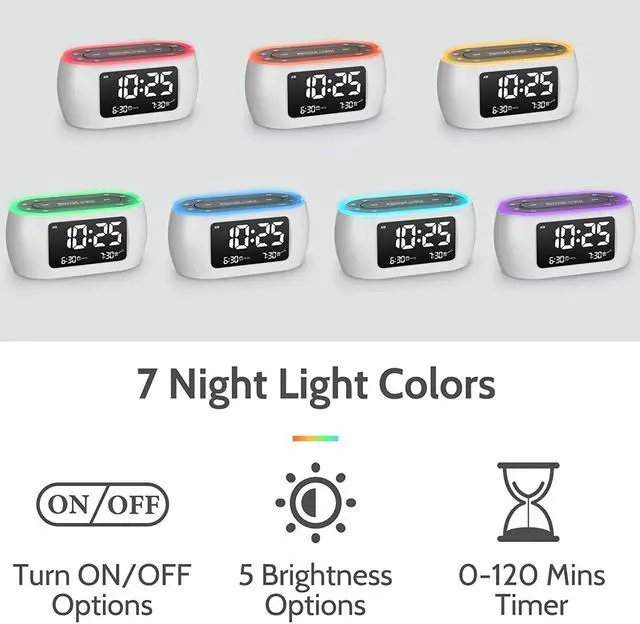 NIGHTLIGHT & RADIO WITH AUTO OFF TIMER- Glow provides 7 color nightlight with 5 level brightness to add an element of charm to your bedroom. Plus a radio for bedtime music to enjoy a soothing and pleasant bedtime before sleeping. You can also set sleep timer to turn off both nightlight & FM radio automatically