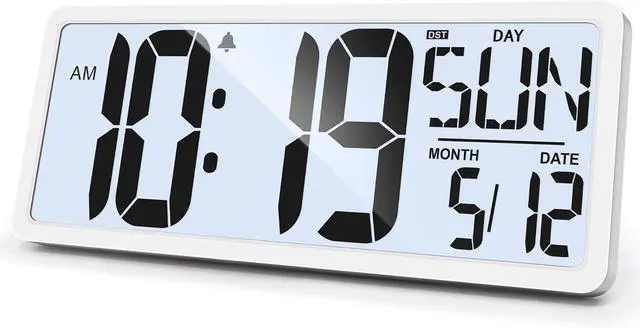 Backlight: This digital wall clock featuring with auto backlight can be illuminated in the dark. The soft nightlight is bright enough to see but not light up the room to disturb your sleep. large digital wall clock has an extra large LCD high-definition display with big bold numbers, it is easy to read from far distance at any angle. digital clock is great for living room, kitchen, bedroom, classroom, gym, nursing home and office