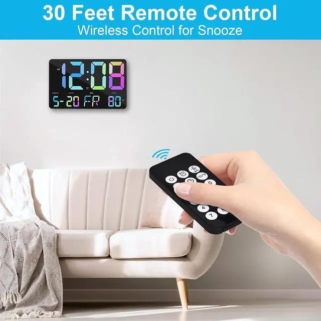 [MULTI-FUNCTION DIGITAL CLOCK] The remote can be used within a 30 fts range and can be turn off the buzzer in bed. You can use it to set the time, date, 12/24 hours, Fahrenheit/Celsius
