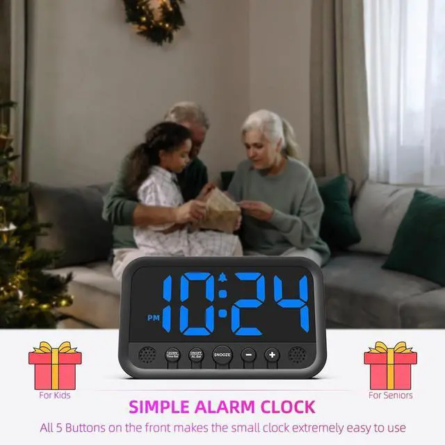 SMALL DIGITAL CLOCK WITH DIMMABLE LED DISPLAY The small clock is incredibly fantastic, featuring an ultra-clear display with 6 levels of brightness and time digits that stand at a height of 1.5 inches. It' s the great bedroom clock for your bedside, desk or nightstand.
