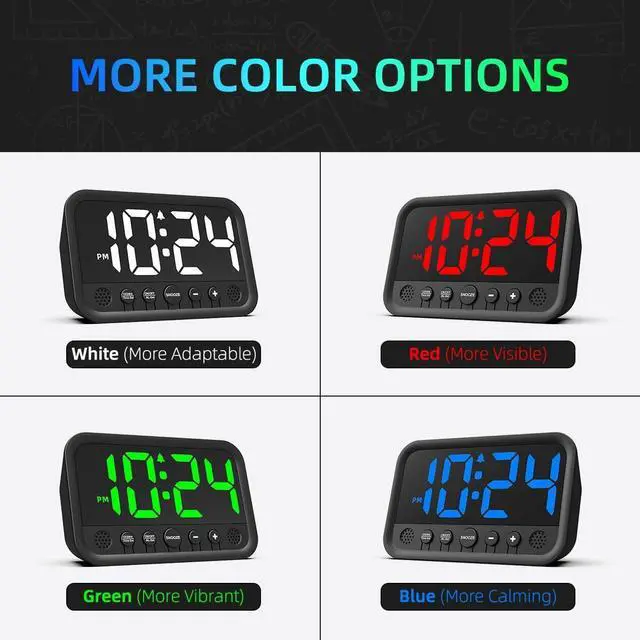 LOUD ALARM CLOCK WITH 5-LEVEL BUZZER VOLUME - The users of our loud alarm clock can easily set their preferred alarm volume (ranging from 65 to 85 dB) to wake up in a gentle, natural, or even more energetic manner.