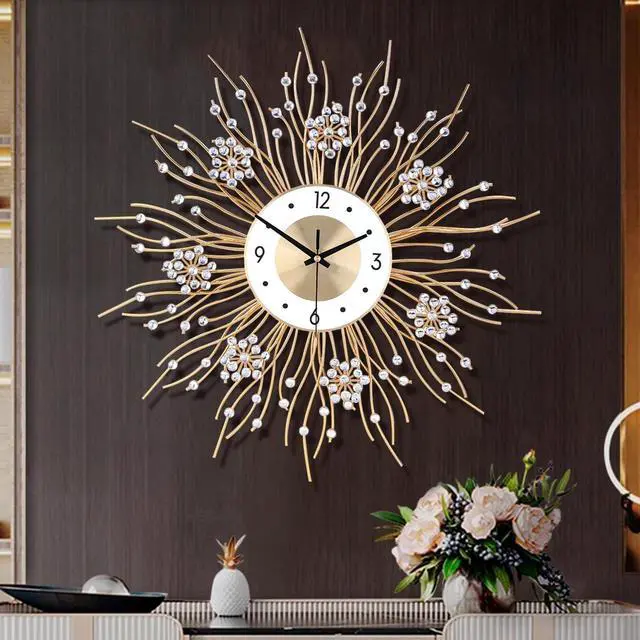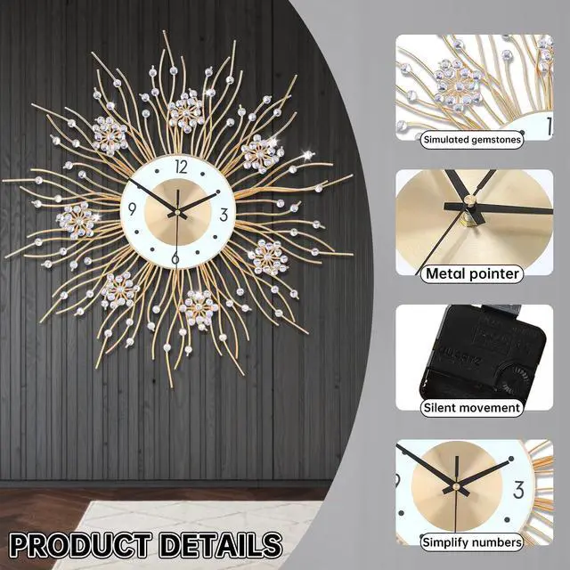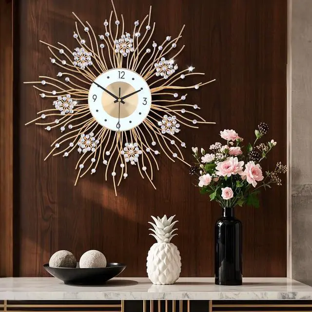 Decoration Wall ClockSunflower shape represents having a bright and happy heart like the sun, aiming to convey the spirit of positivity and encourage people to remain optimistic and enthusiastic in the face of various challenges in life. A simple round clock dial with a golden sun shape exudes geometric art, adds elegance, and enhances the taste of home space.