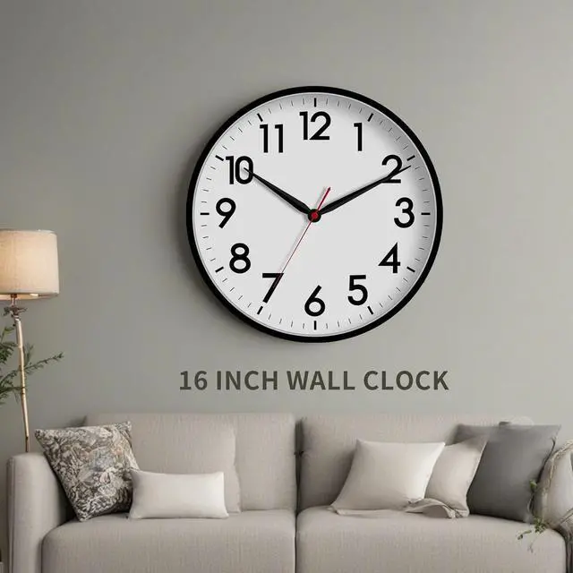 AKCISOT 16 Inch Wall Clock Large Silent Non-Ticking Wall Clocks Battery Operated - Analog Classic Clock Decorative for Living Room, Office, Home, School(Black)