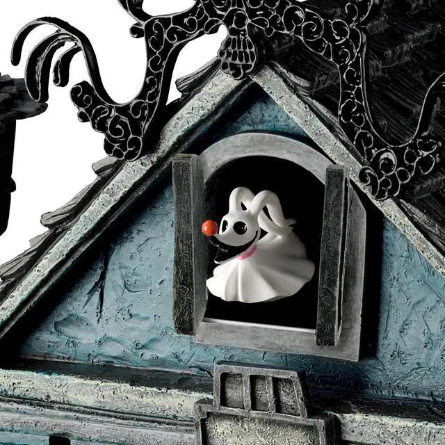 MUSICAL FEATURE: Plays " This is Halloween" on the hour while Zero character emerges from Town Hall doors, replacing traditional cuckoo sound