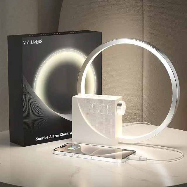 WAKE MODES WITH SNOOZE: Choose from a sunrise wake up light with smoothing sounds, just a wake up light, or traditional alarm bells based on your preference for any given day. The 360° circular light simulates a natural sunrise to help you wake up gradually to 10 minutes of increasing light intensity and your choice of soothing natural sounds for a relaxed rise each morning.