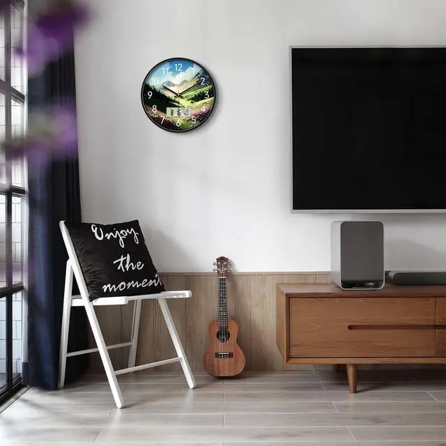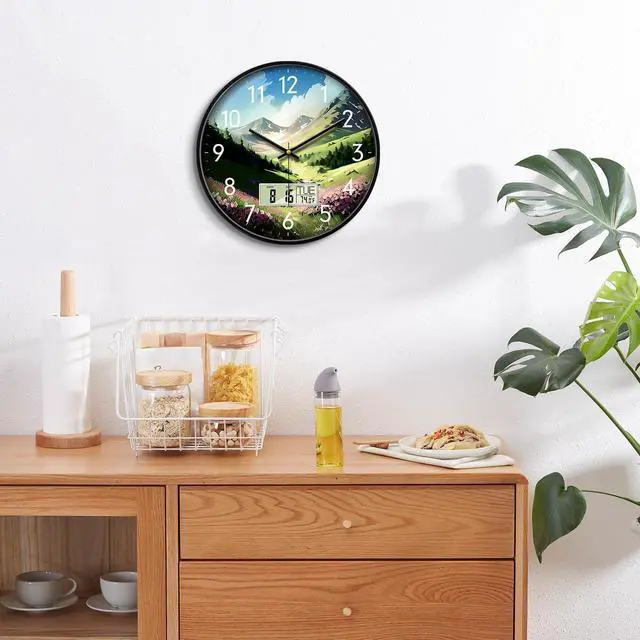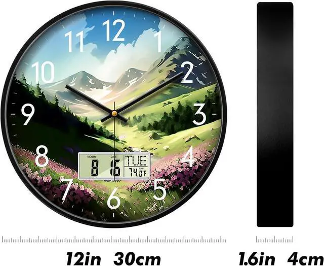CLEAR AND EASY TO READ- SCOAGE round modern wall clock measures 12 inches in diameter, 1.6 inch deep. You can see the time, date and temperature easily. This wall calendar can meet your daily needs of time.