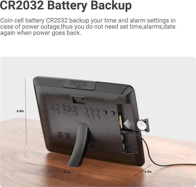 Digital & Included Battery Memorizes Settings------ It is a electric plug in clock not battery operated clock, power adapter connection is required for all functions work include USB charging, alarms, time, calendar, temperature. Coin cell battery CR2032 is rather for the time and calendar memory which is saved in the event that the power get disconnected.
