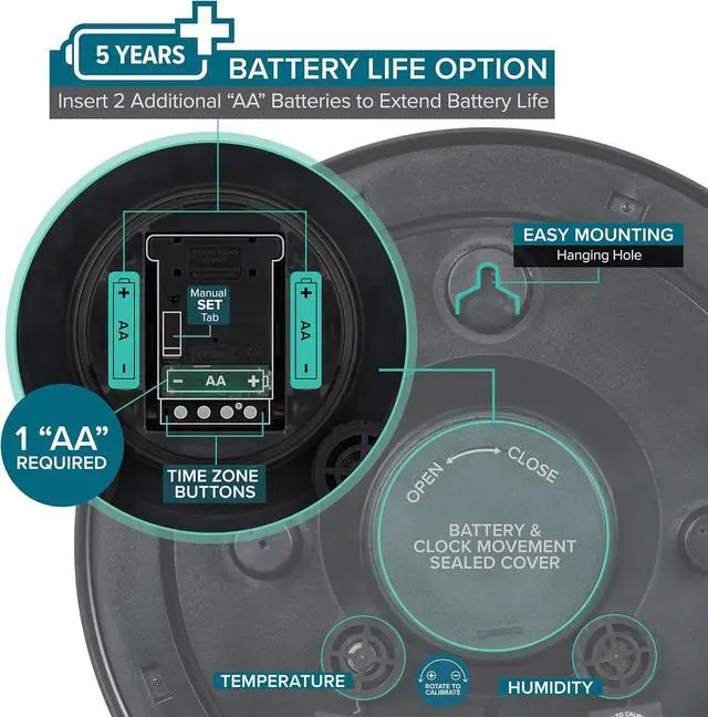 [5-Year Battery Life] A quality set of 3 AA batteries will keep the clock running for up to 5 years an impressive feat offering unparalleled convenience and peace of mind