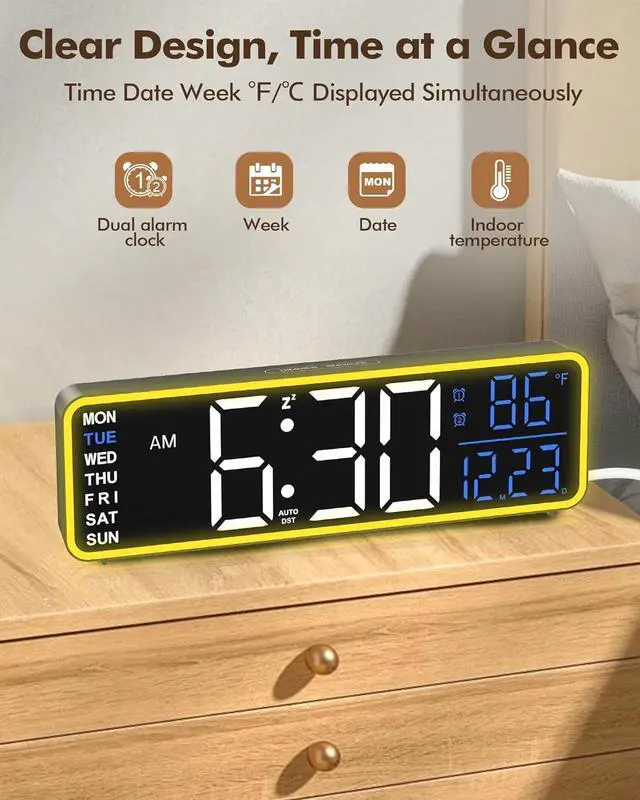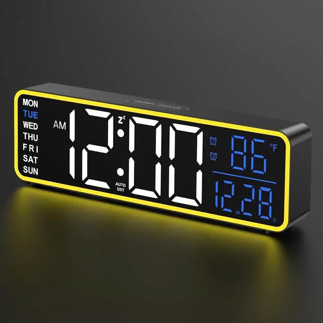 The digital alarm clock has day of the week, date, temperature and time, and night light make nights more fun, fully functional