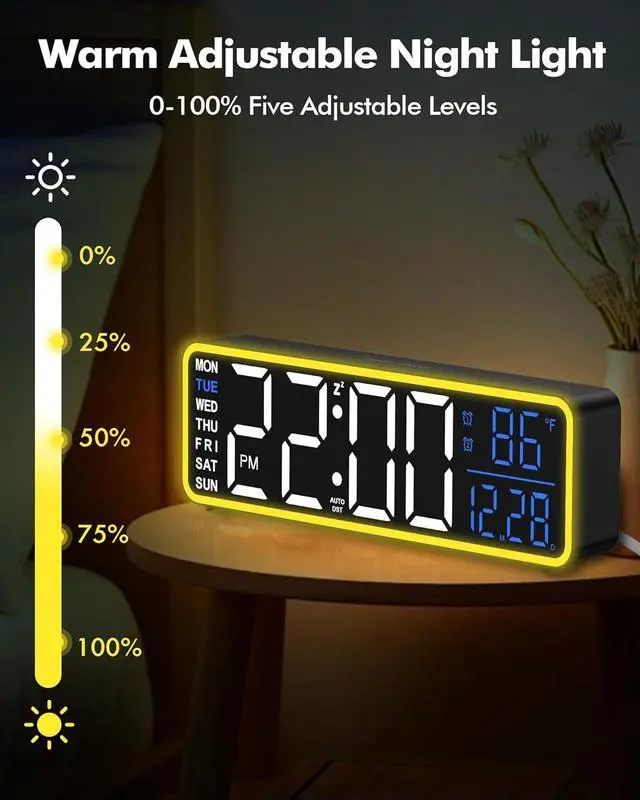 The night light is awesome, and alarm clock can also be wall-mounted, it can replace your old alarm clock and wall clock, perfect for office and home use