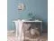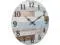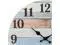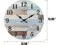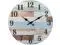 Rustic clock features a vintage worn blue and white clock face print with lightly distressed black numbers for an antique farmhouse feel