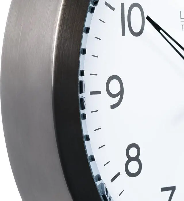 10" Brushed black stainless steel case with Silver chapter ring design; Raised numbers on bezel