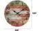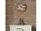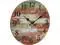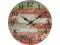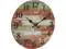 Rustic wall clock features a lightly distressed painted wood clock face print with black black Arabic numbers giving a vintage farmhouse feel