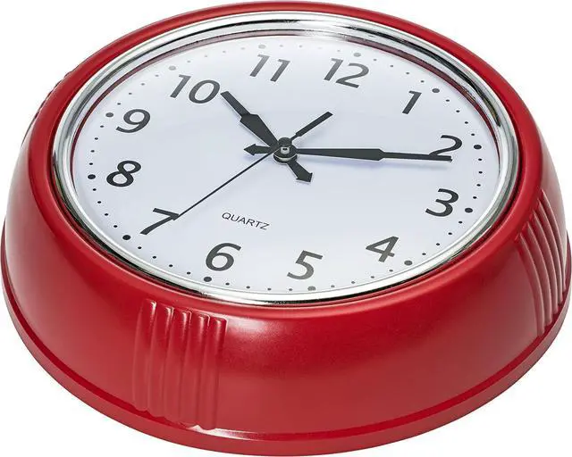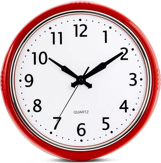 Decorate and enhance your home with this cool red retro clock. Great for your kitchen, dining room, bedroom, classroom, office, shop, restaurant or diner
