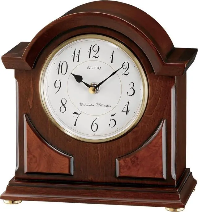 Features a Westminster/Whittington chime which chimes every quarter hour and strikes on each hour; option for automatic night shut-off and volume control