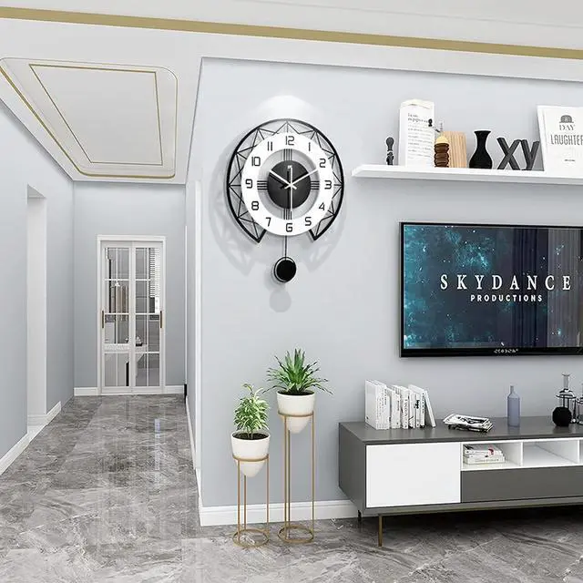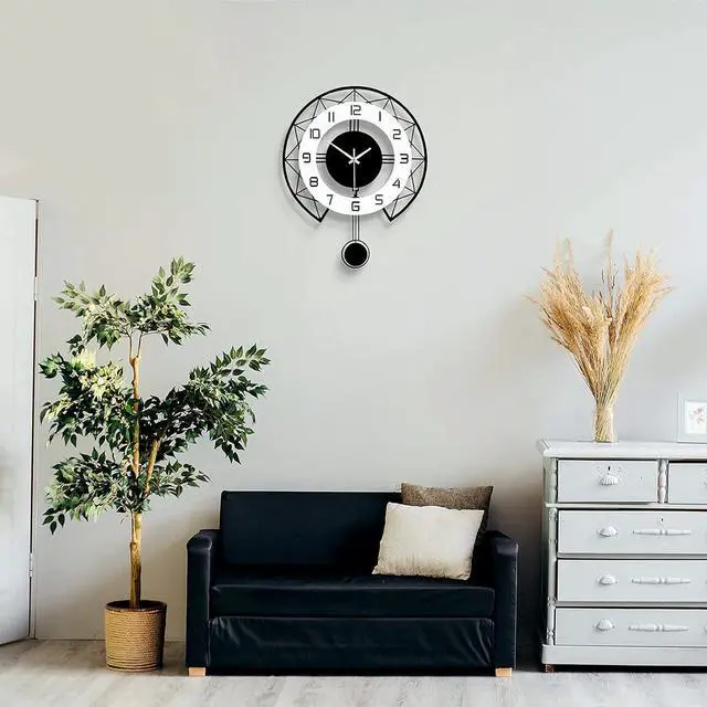 Large Wall Clock for Living Room Decor Modern Silent Pendulum Wall Clock for Home House Kitchen Bedroom Decorative Big Wall Clock Non Ticking Battery Operated Quartz for Indoor Bathroom 17 Inch