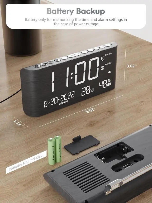 Note: This is a Non-battery-powered Clock, 2 AAA batteries (not included) are only used to remember time and alarm settings when power outage