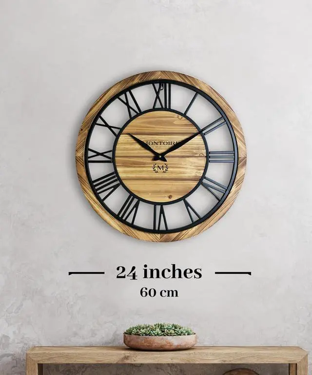 Classic Meets Contemporary - Elevate your interior with a rustic wall clock that combines farmhouse charm with contemporary flair. Contrast between iron and wood creates a striking visual focal point with this oversized wall clock.