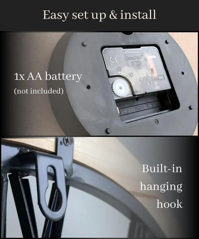 Fuss Free Installation - An included hook to hang your large clock easily will make it simple to transform your room with functional beauty. The sturdy hook provides peace of mind, keeping this big wall clock securely in place for reliable timekeeping.