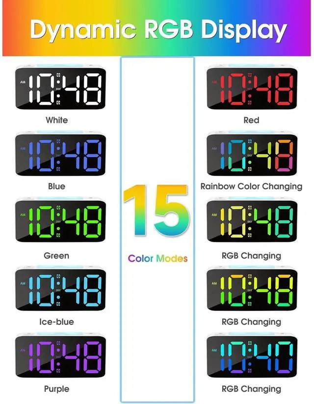 Dynamic RGB Display: This cool desk clock features 15 different RGB colors and 4 brightness levels, Great gift for teenagers