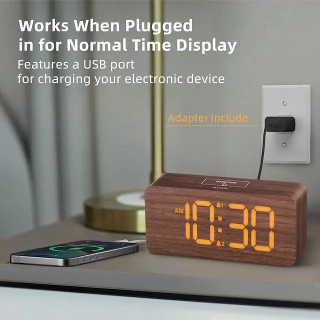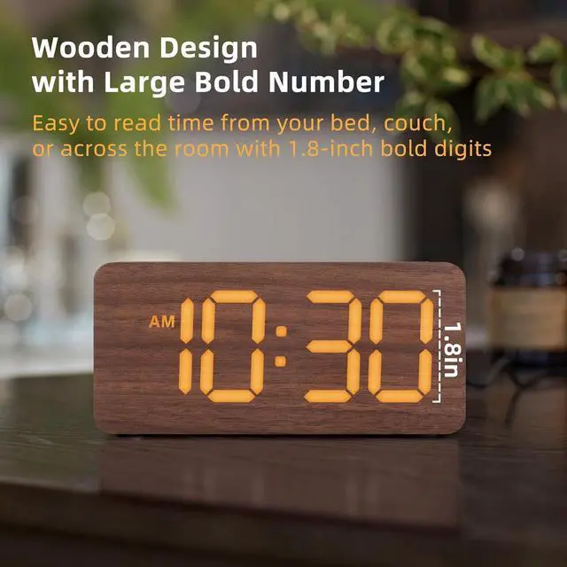 • EASY-TO-READ WOODEN DIGITAL CLOCK WITH LARGE NUMBERS: Featuring 1.8-inch big bold numbers, this desk clock is easy to read from across the room, even without glasses. Designed for simple set-up, it's ideal for kids, teens, adults, and seniors. (Note: The display stays lit only when plugged in)