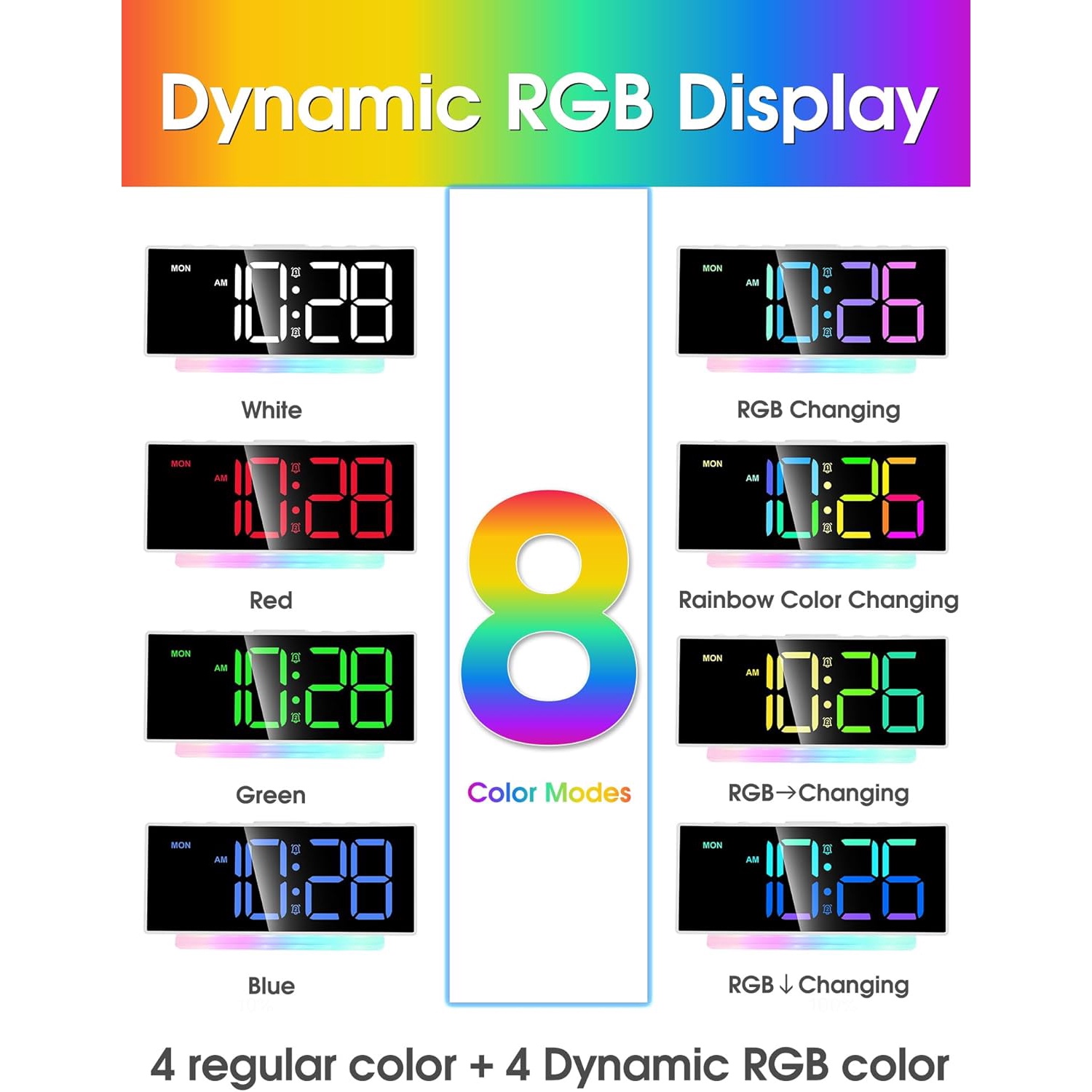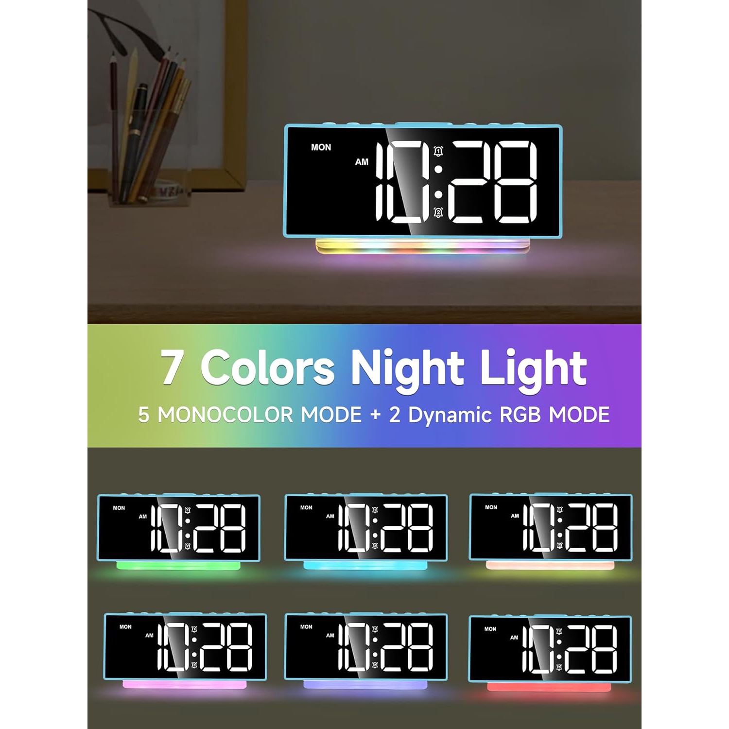 Dynamic RGB Display And Nightlight: Enjoy 8 different colorful screens and a 7-color rainbow atmosphere light,adding a cool and fun touch to any desktop decoration