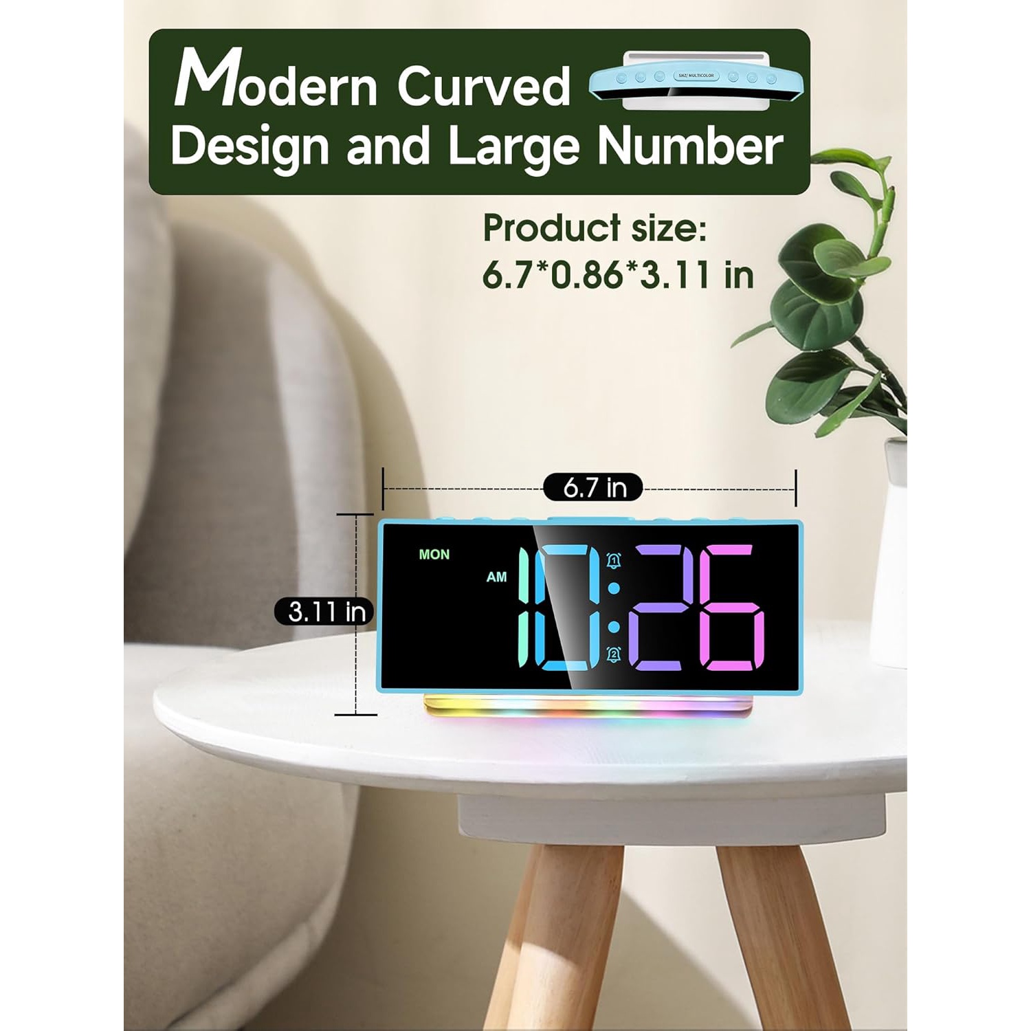 Eyesoul Loud Alarm Clock for Heavy Sleepers Adults,Kids,Teens,Digital Desk Clock with USB Port,Large Numbers,7 Color Night Light,Modern Electronic Plug in Simple Clock for Bedroom(Blue+Dynamic)