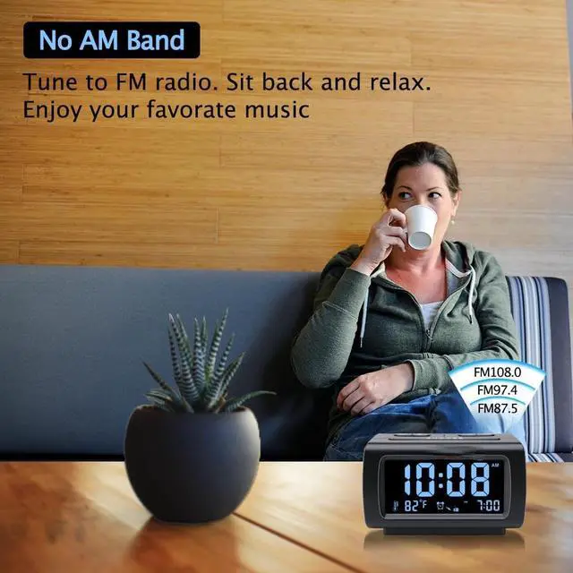 Eyesoul Alarm Clock Radios for Bedrooms with Battery Backup, Large Big Numbers with Brightness Dimmer, USB Port, Bedside Digital FM Radio with Sleep Timer, Temperature, Adjustable Volume, Snooze