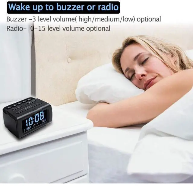 Adjustable Alarm Sound and Snooze: Wake up to buzzer or radio should your preference. Both alarm sound volume can be adjusted to your comfortable level. (buzzer : 3 level, radio: 1-15 level). The alarm will begin sound faintly then increases to its max within 5 seconds. 8 minutes interval snooze can be repeated in one hour until turning off.