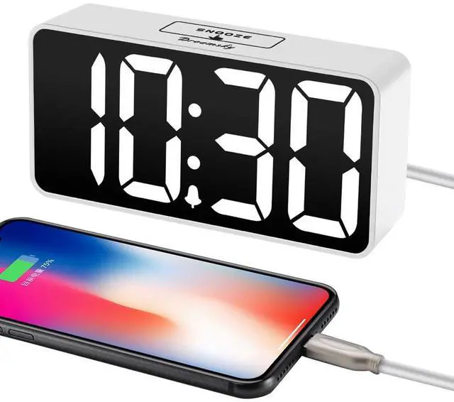Large Display Electric Alarm Clock with Brightness Dimmer: Corded plug in clock with compact streamline design yet large number display. 2 inches jumbo illuminated LED digits ensure the time is easy to see even for impaired vision people. The brightness dimmer allows you set the brightness of display, needless worry the brightness, either too bright thus affecting your sleep or too dark to read time.