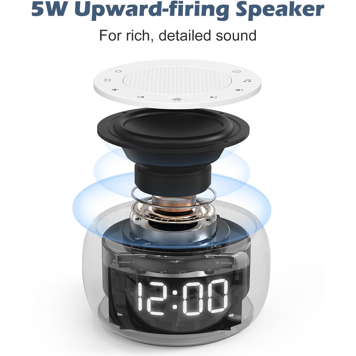 2-in-1: Sound machine and alarm clock, all in one. Get a good night's rest while still getting up on time. Its high-quality 5W speaker help block disruptive environmental noises.
