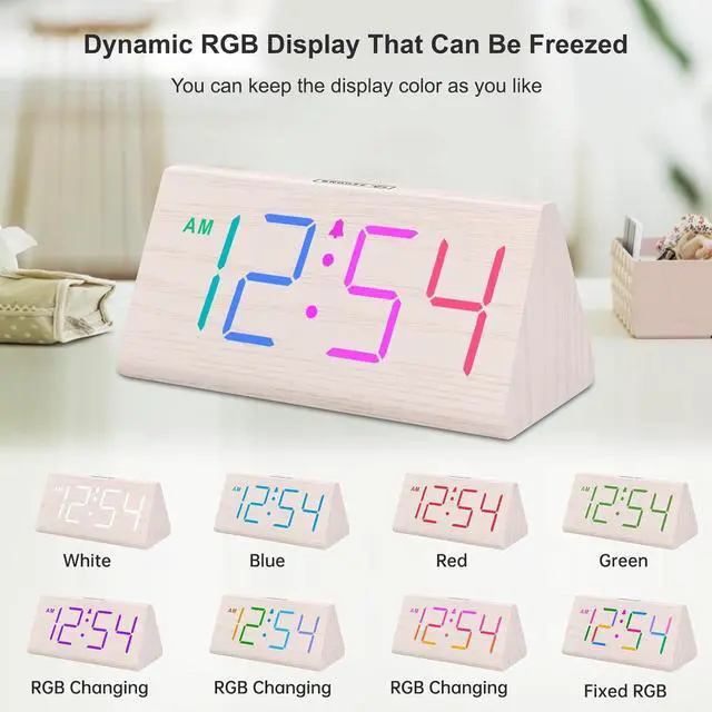RGB Dynamic Display That Can Be Fixed: come with 8 patterns color changing display, the modern bedroom clock provides multiple color choices as well as the choice to fix the color you like, making a pretty bedroom alarm clocks for kids, boys, girls, teens and adults, seniors elderly.